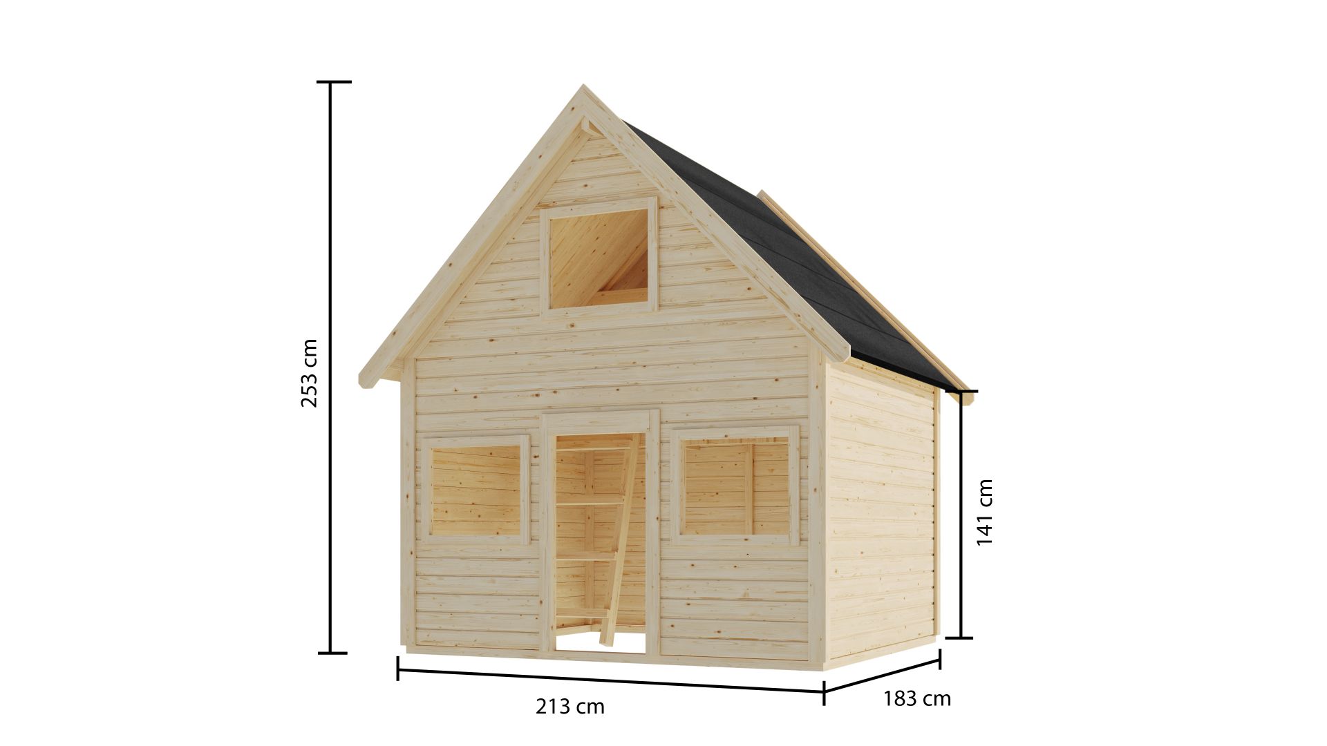 Das Spielhaus Kalle im exklusiven Aktionsset bietet Ihren Kindern eine ganz neue Dimension des Spielens. Das Highlight dieses Modells ist die integrierte zweite Etage. Über eine sichere Holzleiter mit robusten Haltegriffen gelangen die Kleinen auf die obere Ebene, die zum Verstecken, Lesen oder Beobachten einlädt. Mit einer beeindruckenden Firsthöhe von 253 cm wirkt das Haus im Garten imposant und bietet auch im Inneren viel Kopffreiheit.
