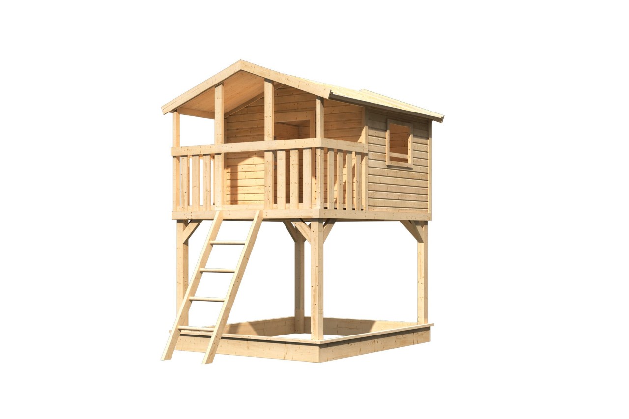 Abenteuer-Stelzenhaus „Benjamin“ – 150cm Podesthöhe – Holz Natur inkl. Terrasse & Sandkasten