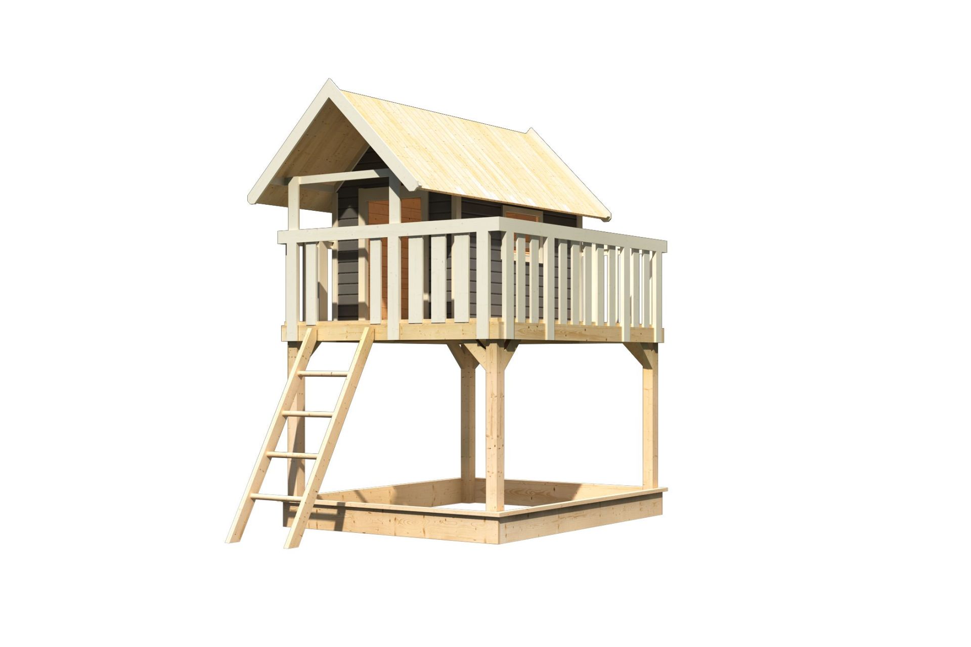 Abenteuer-Stelzenhaus „Fidel“ – 150cm Podesthöhe – Terragrau inkl. großer Terrasse