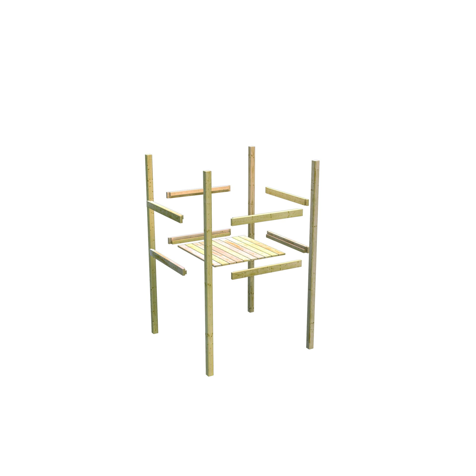 Im Set sind bereits 6 Schaukelanker enthalten. Aufgrund der Podesthöhe von 150 cm empfehlen wir für die vier Turmpfosten zusätzlich die Verwendung von H-Ankern oder Bodenankern zum Einbetonieren, um maximale Standfestigkeit bei wildem Toben und Wind zu garantieren.