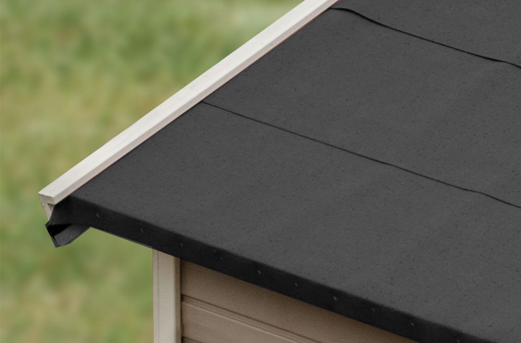 • Inklusive Dacheindeckung — 3 Rollen selbstklebende Dachbahn direkt im Set enthalten