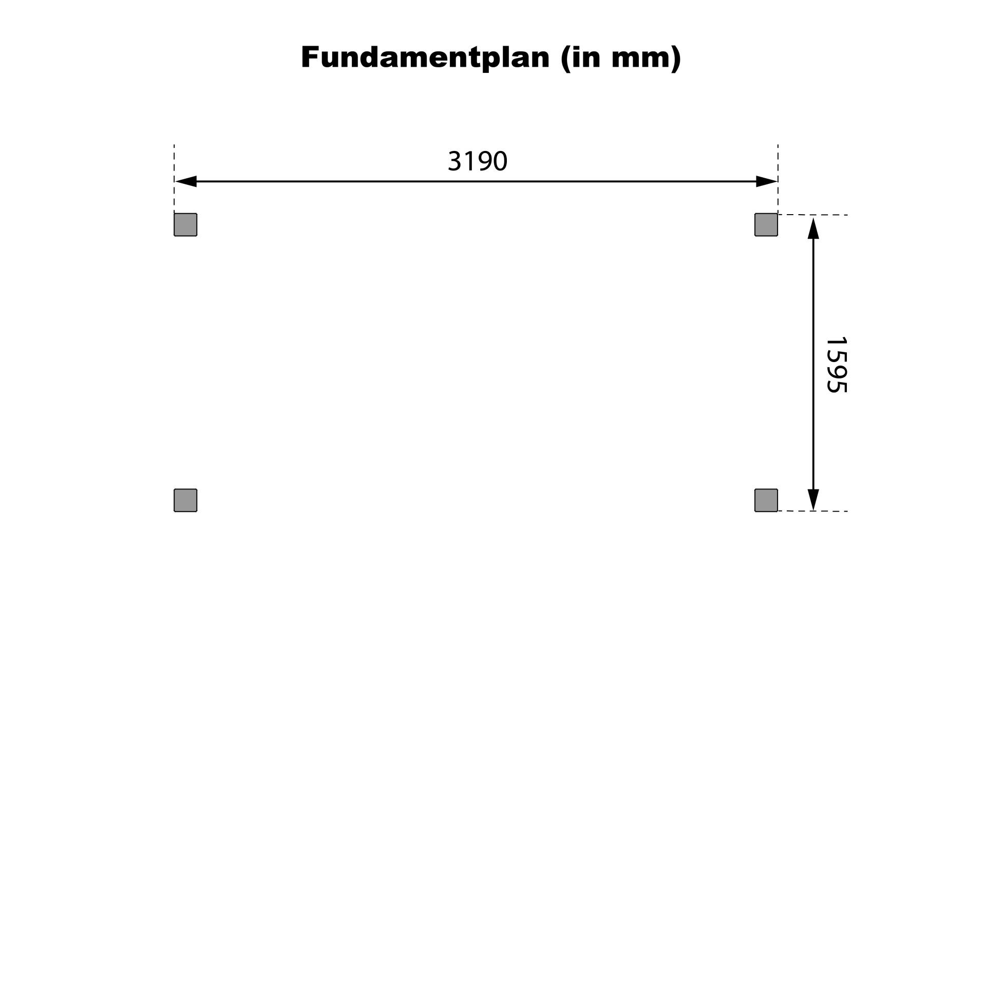 Les 4 ancrages de poteaux en H sont inclus dans le kit, mais sans le matériel de montage supplémentaire (vis pour la fixation des poteaux et béton). Nous recommandons de sceller les ancrages dans des fondations par plots d'au moins 60 cm de profondeur pour garantir une stabilité maximale.