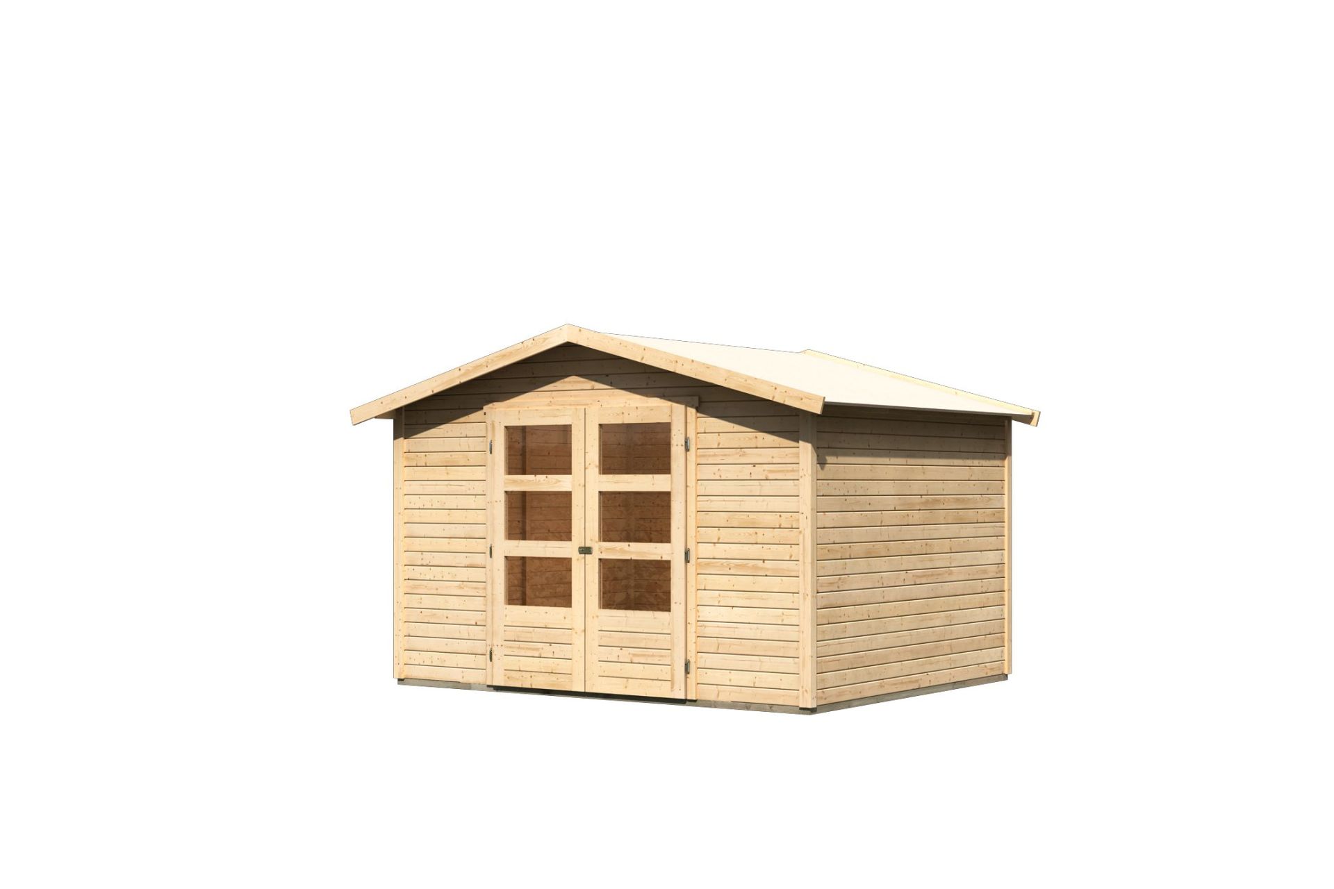 Großes Gerätehaus „Amberg 5″ Satteldach modern aus Holz in Natur